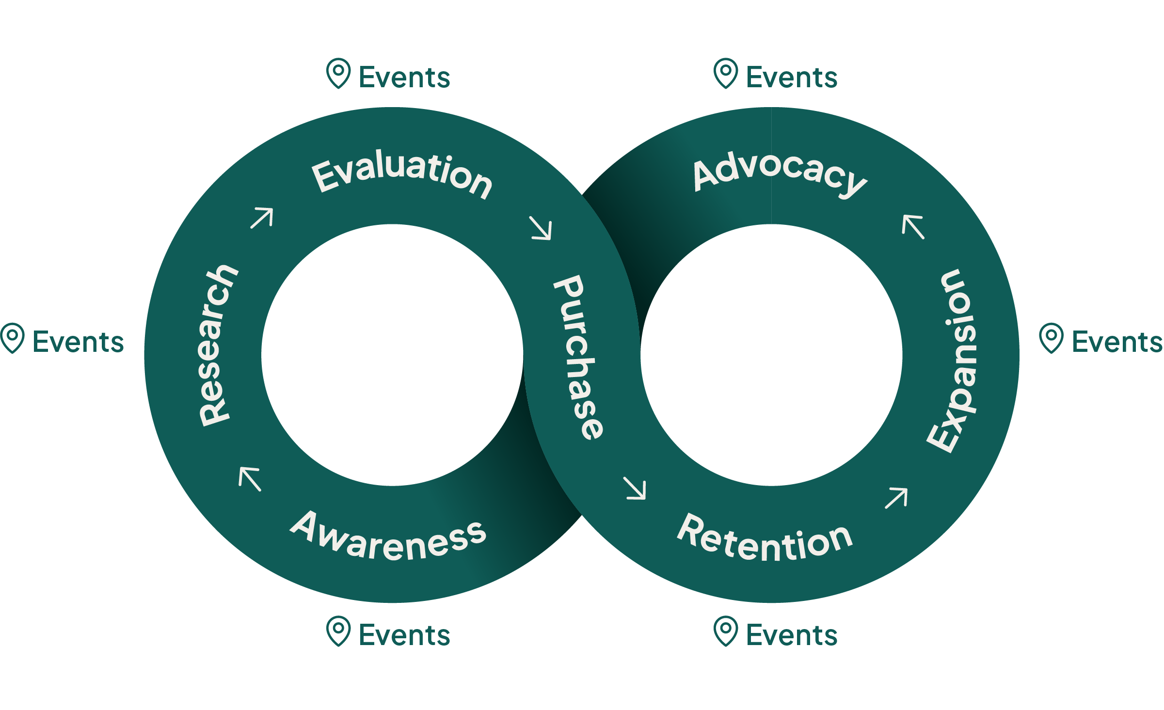 Arrangementer skaper meningsfulle kontaktpunkter gjennom hele kundereisen, fra bevisstgjøring til lojalitet og anbefalinger.