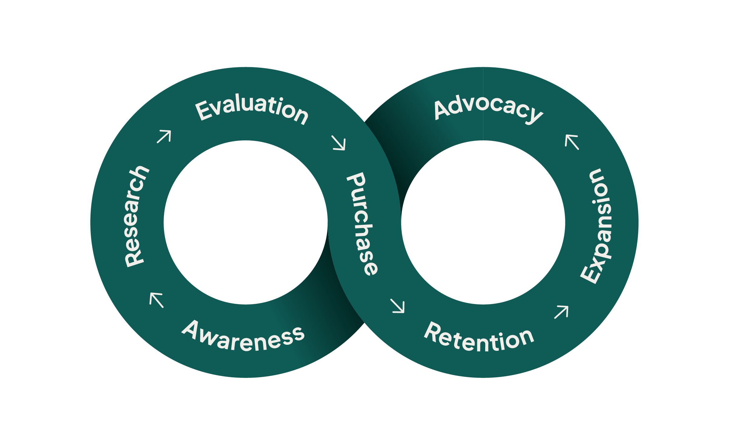 SuperOffice CRM er bygget på Relationship Loop – en modell som legger til rette for langsiktig vekst gjennom bevisstgjøring, innsikt, evaluering, kjøp, kundelojalitet, videreutvikling og anbefalinger.